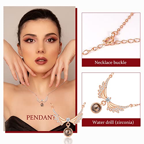 【S925 zilveren ketting】De engelhanger met 100 talen “I love you” en de ketting van de ketting zijn gemaakt van hoogwaardig sterling zilver, vol van je liefde, de ketting is delicaat, duurzaam en zal nooit bezoedelen. Zet de fotofunctie van je mobiele telefoon aan of richt je ogen op de bedel en kom er dichtbij en je ziet “I love you” in 100 talen.