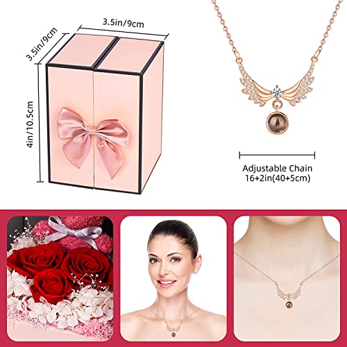 Set met geconserveerde rozen bevat 925 sterling zilveren ketting met “I Love You” in 100 talen, verjaardag, Valentijnsdag, verjaardag, kerstcadeaus voor haar vrouw, vriendin