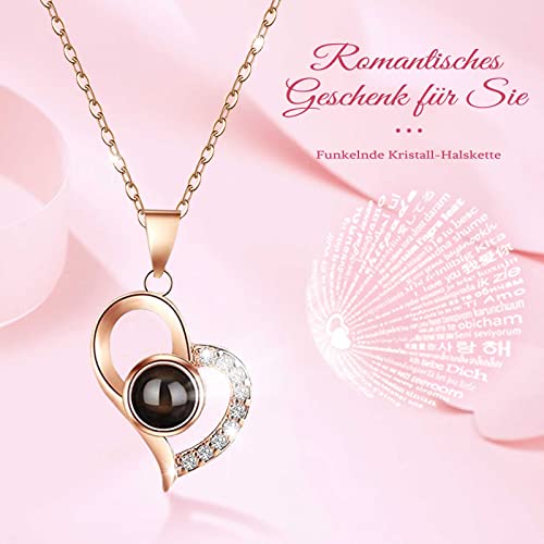 Sunia Geconserveerde echte roos, handgemaakt met ketting en I Love You in 100 talen, betoverende roos, ideaal als romantisch cadeau voor Valentijnsdag, verjaardag, trouwdag, enz.