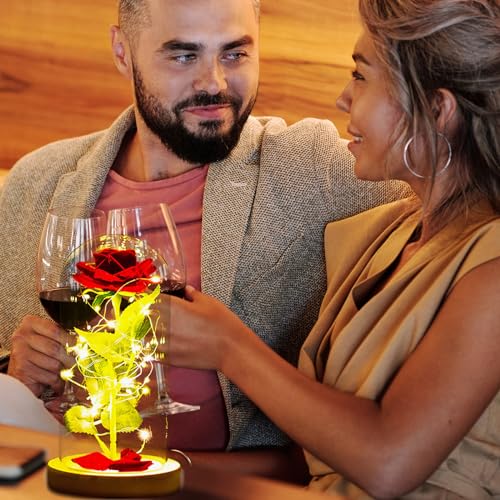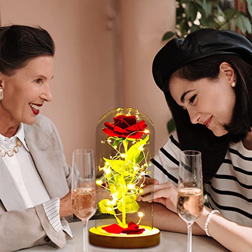 Valentijnsdag roos cadeau voor je schoonheid en het beest, eeuwige roos in glas met ledlicht in glazen koepel op houten sokkel, cadeaus voor vrouwen, moeder, vriendin, vrouw, verjaardag, trouwdag