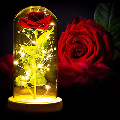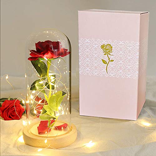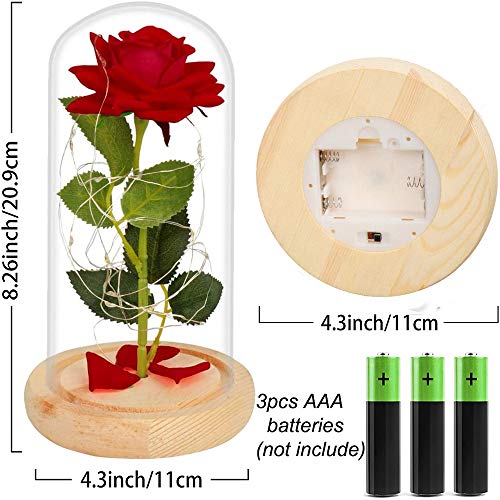 Specification: Valentijnsdag roos cadeau voor je schoonheid en het beest, eeuwige roos in glas met ledlicht in glazen koepel op houten sokkel, cadeaus voor vrouwen, moeder, vriendin, vrouw, verjaardag, trouwdag
