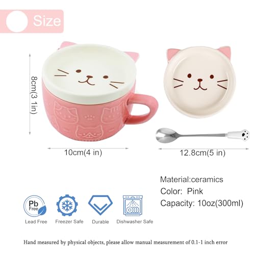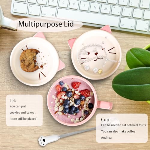 Specification: Cadeaus voor vrouwen Haar schattige Kawaii roze kat koffiemokken met deksels, kerstverjaardagscadeaus voor meisjes, vriend, kinderen, mannen, vrouw, moeder, oma, leraar, nieuwigheid dierlijke koffie